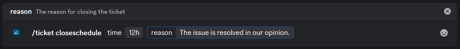 With /ticket closeschedule, you can: