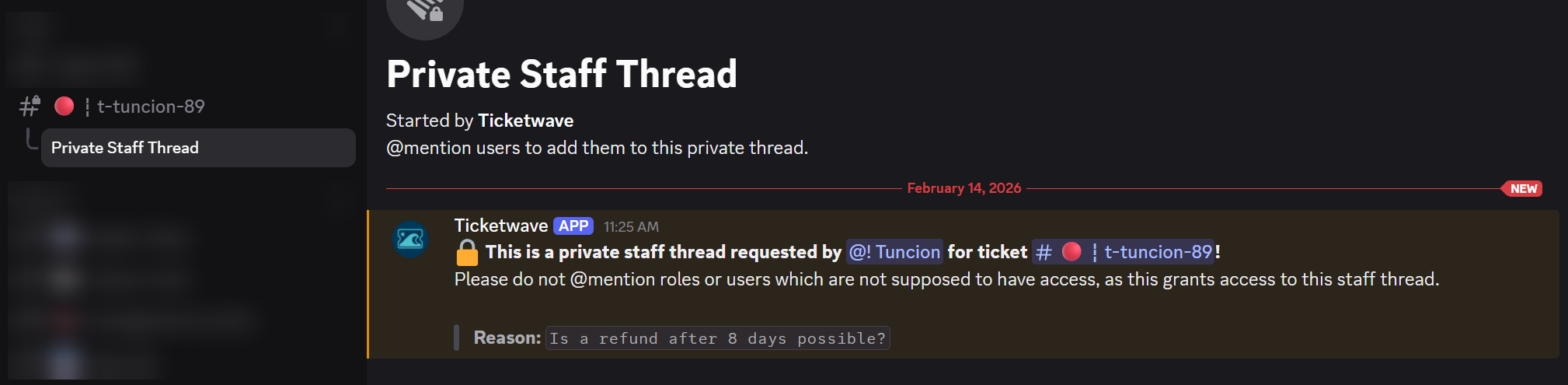 - 🔐 Create a private staff thread for the ticket